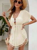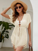 SHEIN Swim Guarnição De Borla Cintura Com Cordão Manga De Asa De Morcego Quimono