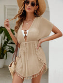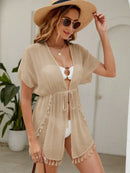Peças ForradasSHEIN Swim Guarnição De Borla Cintura Com Cordão Manga De Asa De Morcego Quimono