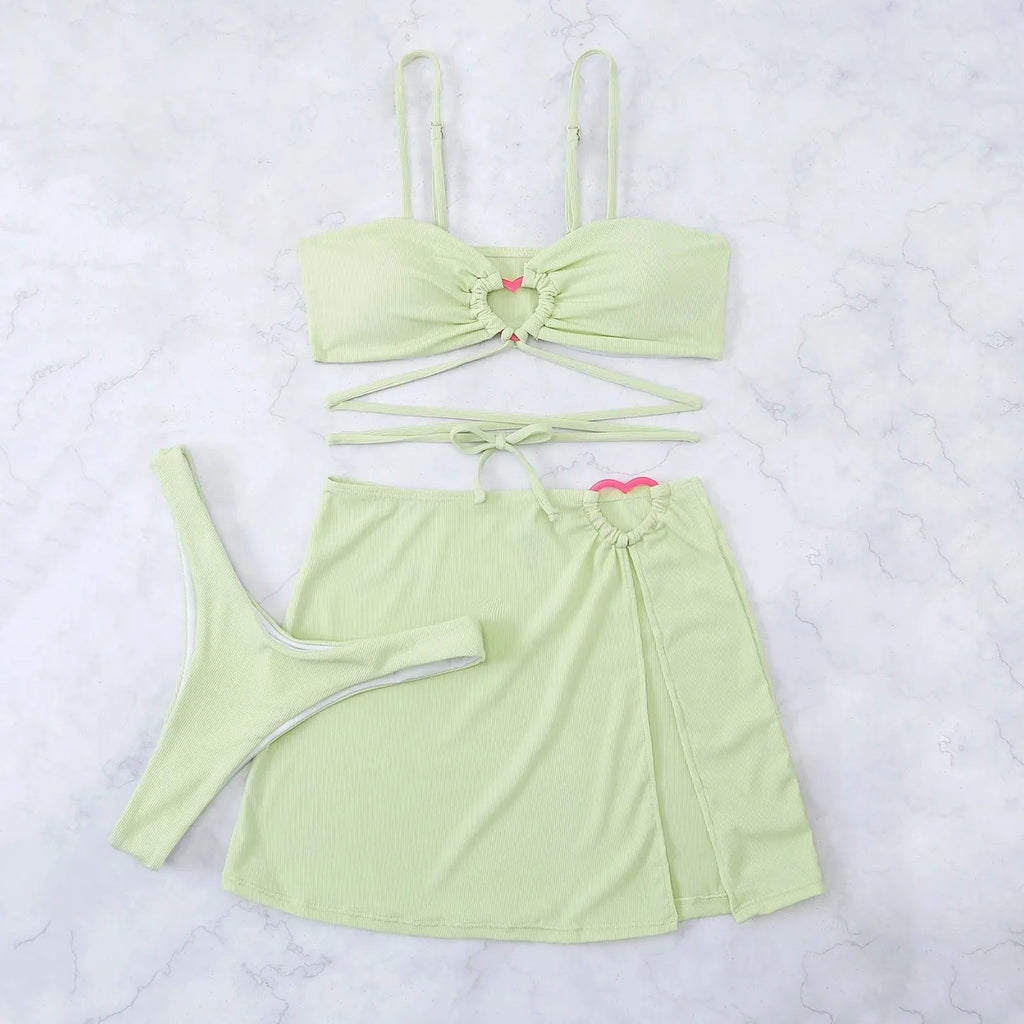 Explore o verão com o Biquíni Bella Conjunto de 3 Peças, projetado para quem adora moda e conforto na praia. Este conjunto inclui um biquíni de 3 peças. Completo com suporte de aro para um ajuste perfeito. Acompanhado por uma saída de praia leve e elegante, este conjunto é feito de poliéster macio e elástico, proporcionando conforto excepcional e liberdade de movimento. Perfeito para festas na piscina, ou simplesmente relaxar à beira-mar, o Biquíni Bella irá complementar seu estilo com elegância e charme. Prepare-se para destacar-se sob o sol com este conjunto versátil e estiloso!