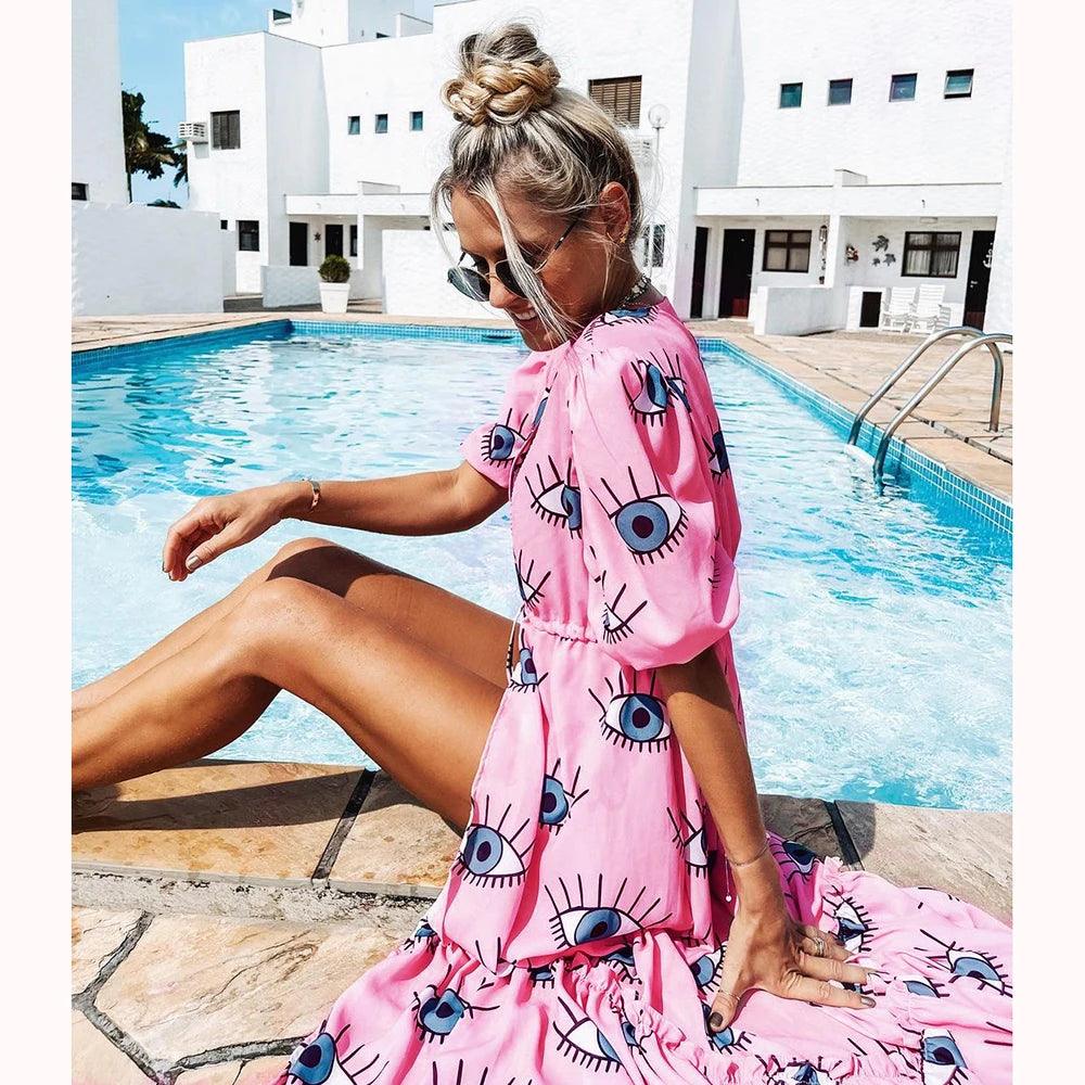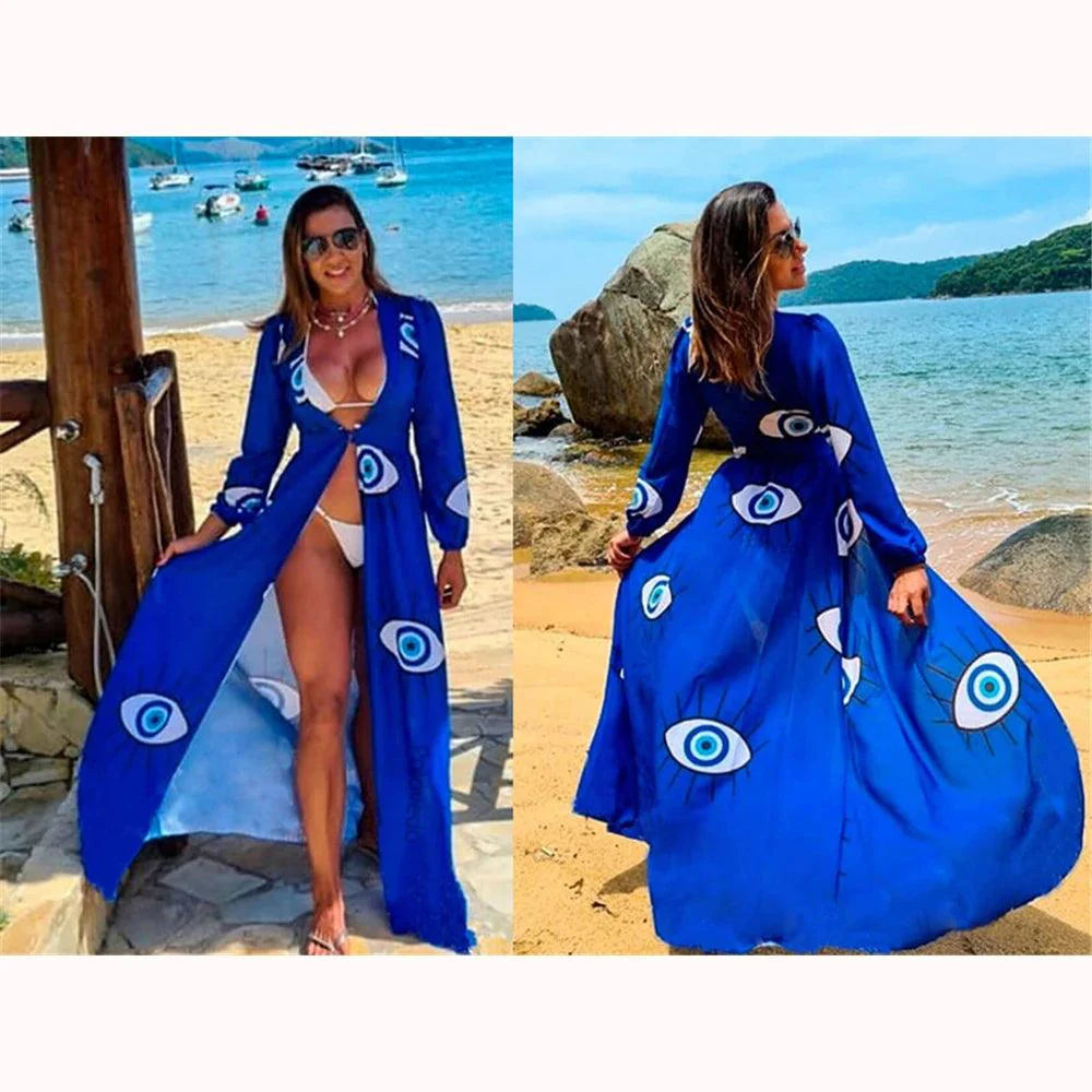 - Estampa Exclusiva: A saída de praia Olho Grego apresenta uma estampa exclusiva do famoso olho grego, conhecido por afastar energias negativas e atrair boa sorte.