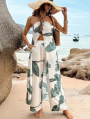 Breezaya Conjunto De Duas Peças Com Top Halter De Fenda Alta E Calça Boca Larga Com Cintura Elástica Com Estampa De Planta Tropical Para Primavera E Verão